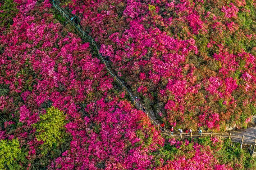 去年,木兰云雾山的杜鹃花盛景曾走红海外。景区相关负责人介绍:“歌曲《映山红》中所唱的景象,正是我们景区盛花期的真实写照。红色杜鹃占景区花种的七成,是观赏映山红的理想去处。近年来,我们在花卉养护和赏花步道建设上持续投入,让游客能体验‘人在花中行’的乐趣;同时不断拓展市场,客源已覆盖武汉‘1+8’城市圈,来自河南、湖南、安徽、江西等地的游客也已大量预订,预计下周陆续抵汉。”